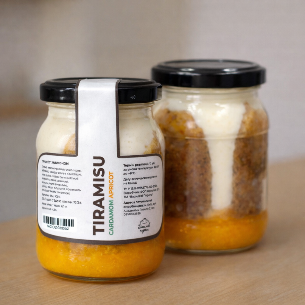 НІЖНЕ ТІРАМІСУ З МАНДАРИНОМ, АБРИКОСОМ ТА КАРДАМОНОМ (1 шт) | В БАНЦІ